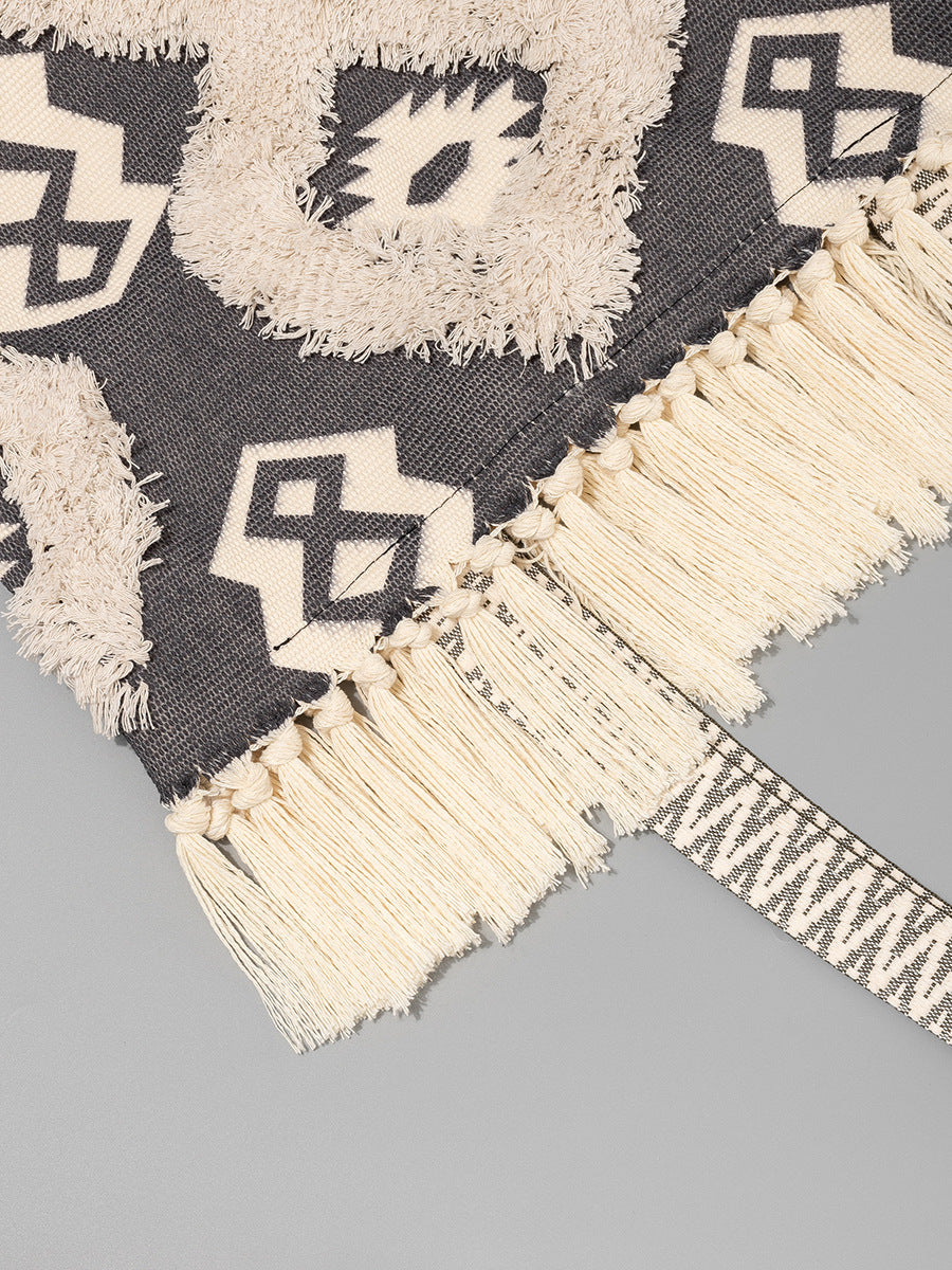 2110 large cotton tassel beach bag
