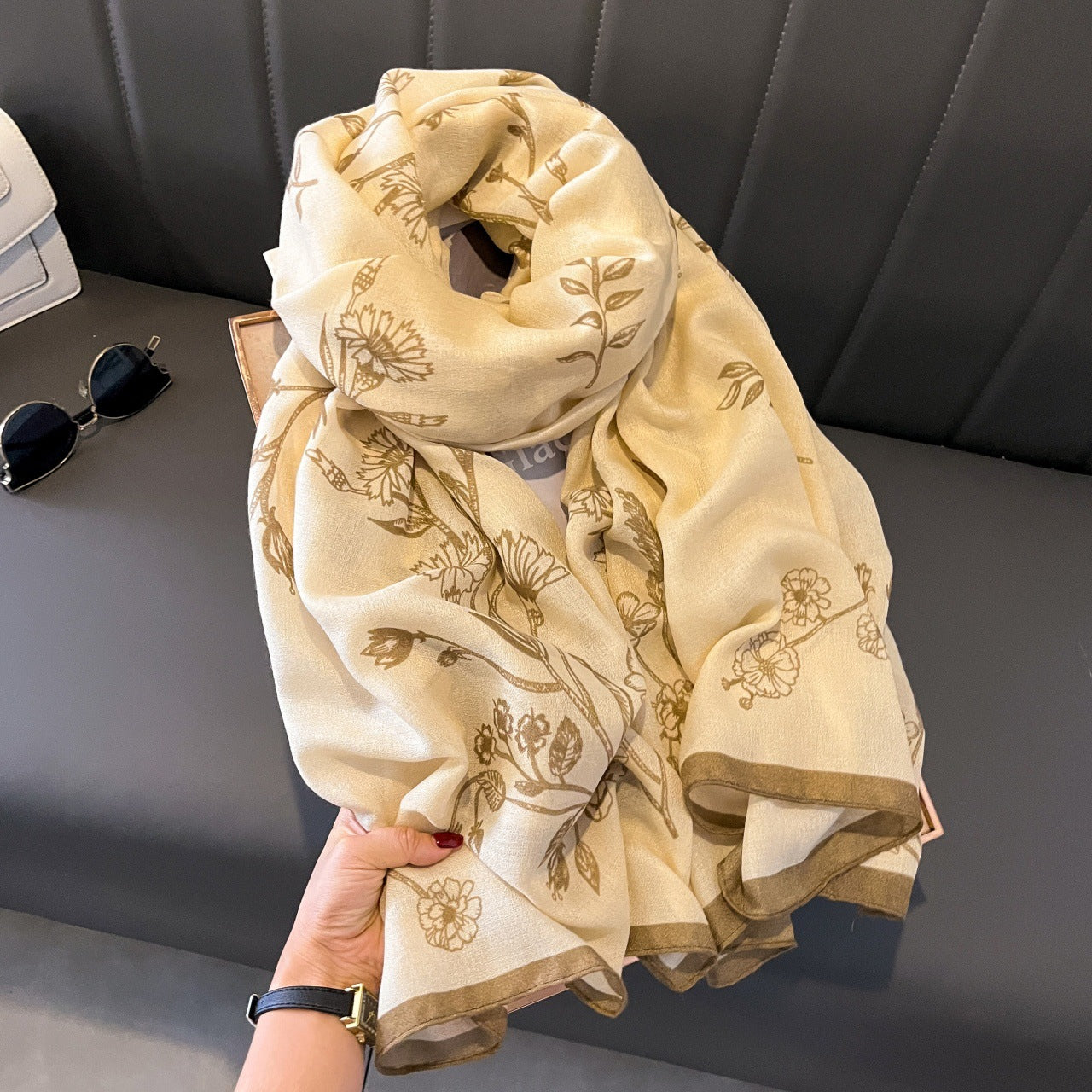 2152 flower print silk scarf